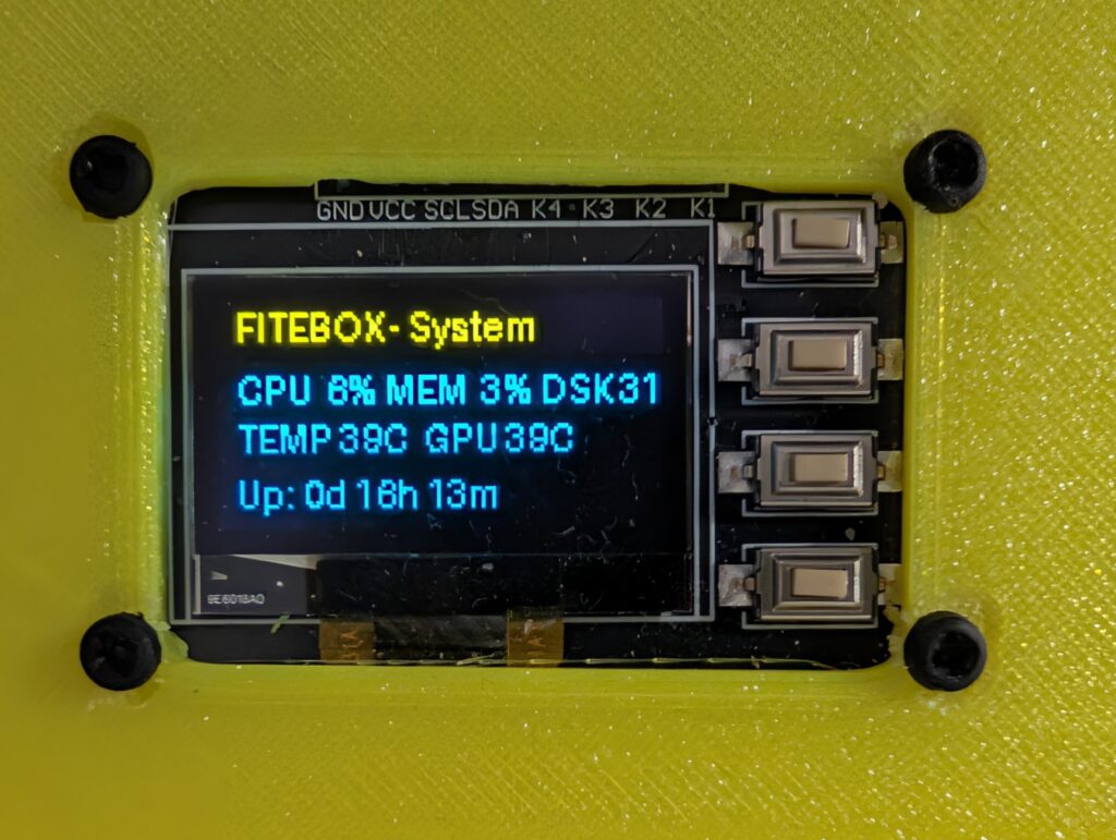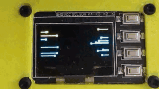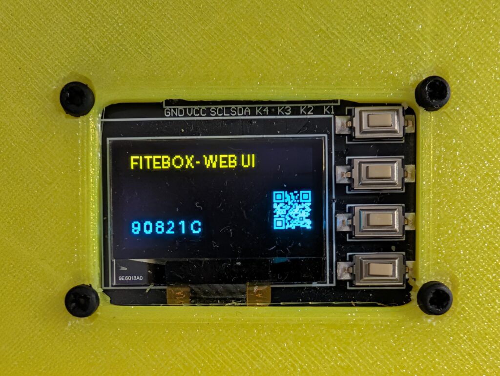 FITEBOX uses an integrated module that combines the SSD1315 OLED display (128×64) and 4 tactile buttons on a single PCB. This eliminates the need for separate button wiring; everything runs through a single connector strip.