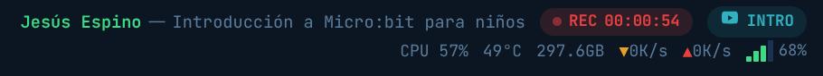setsar=1 is applied to fix SAR (Sample Aspect Ratio) issues from MJPEG capturedrawtextEncoder .... libx264 (software - NO hardware encoder on RPi5) Preset ..... ultrafast (the only preset that achieves ~1.0x speed) Profile .... Constrained Baseline (forced by ultrafast) Tune ....... zerolatency CRF ........ 28 (good quality for conference content) Resolution . 1920×1080 at 30fps Audio ...... AAC LC, 192 kbps, 48 kHz, stereo Container .. MKV (Matroska) Bitrate .... ~2.4 Mbps total (~1 GB/hour)